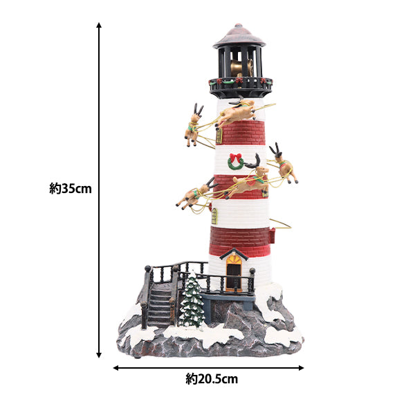 The lights and trees of the lighthouse glow, and Santa and reindeer run around the lighthouse, and "Jinglebell" flows out.