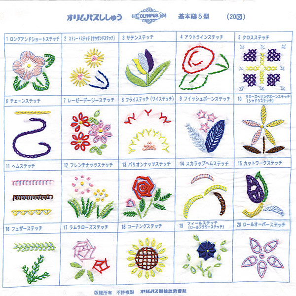 We use 23 types of basic stitch stitches of embroidery. Includes a design that can be easily done by beginners!
