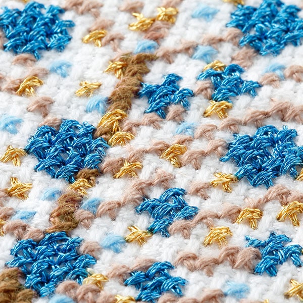 ◆ Kit Contents: No. 25 embroidery thread, glitter embroidery thread, cross needle, No.8300 (Indian Cross) <32> Off -white, color pattern manual, wooden frame