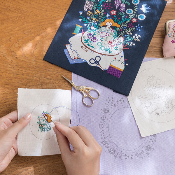 With a heartwarming story embroidery, such as girls, flowers, cat and sewing tools,