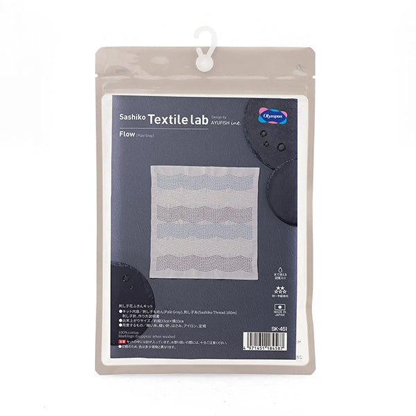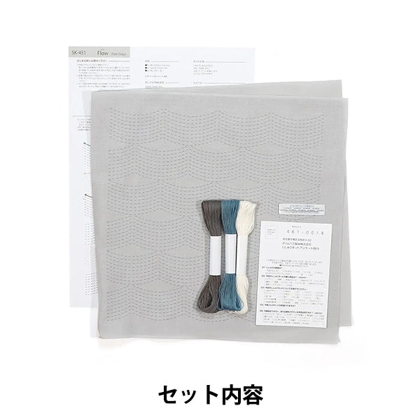 Embroidery kit "Hanachikin Kit SASHIKO TEXTILE LAB Flow Pale Gray SK-451" Olympus