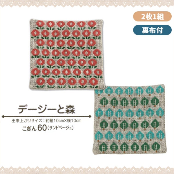 Olympus Harinooto Kogin stab coaster [SashikoKit Kogin Sashimi embroidery Daisy and Mori Chocho and Flower Views] Daisy and Forest