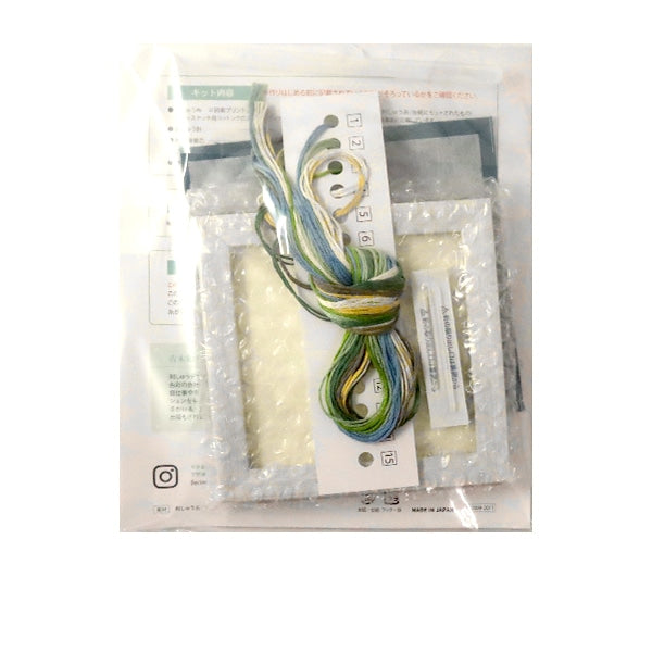 A embroidery kit that spells out seasonal flowers with threads, drawn by Kazuko Aoki in spring, summer, autumn and winter. With a frame