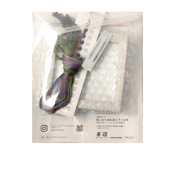 A embroidery kit that spells out seasonal flowers with threads, drawn by Kazuko Aoki in spring, summer, autumn and winter. With a frame