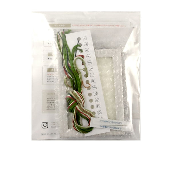 A embroidery kit that spells out seasonal flowers with threads, drawn by Kazuko Aoki in spring, summer, autumn and winter. With a frame