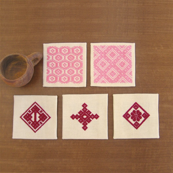 A set of 5 cute coasters made by Japanese traditional embroidery!