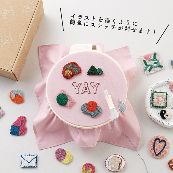 This is a starter set with a tool that allows you to enjoy free stitching (punch needle handicraft using thin threads such as embroidery thread).