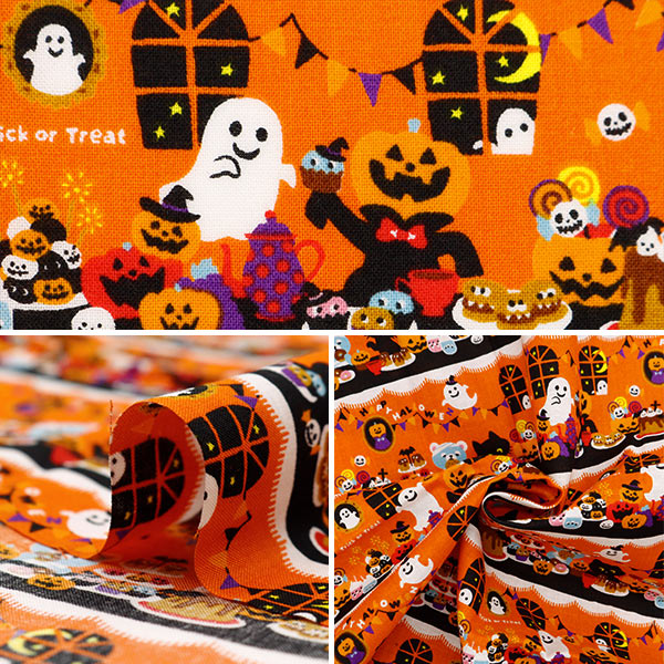[Cloth Sheeting HALLOWEEN Trick or Treat Party Halloween Jack-O-Lantern Pumpkin Ghost Sweets Orange]