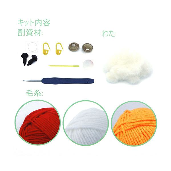 ◆ Kit content:Yarn Crochet Hooks Water eyes / parts Binding Needles Instructions (Japanese / English)