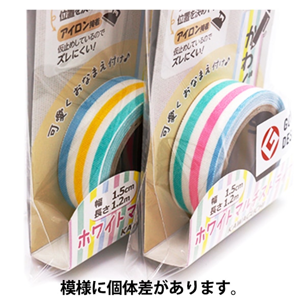 Name label sticker "Kurukurukuma Tape Tape White Multi Stripe 1.5cm x 1.2m 11-780" Kawaguchi Kawaguchi