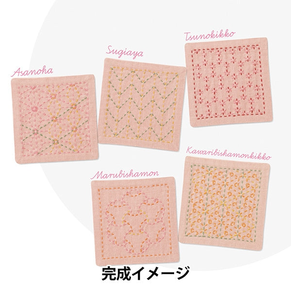 ◆ Kit Contents: bleached cotton Shibu pink,Sashiko5 colors (fine), 5 colors,SashikoNeedle, how to make it