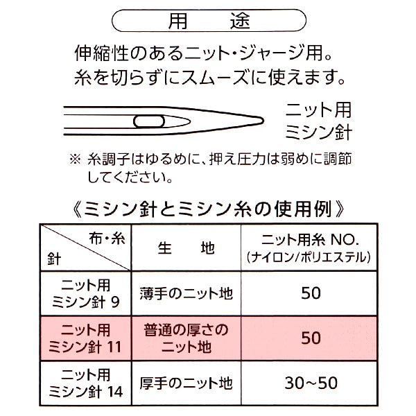 It is a needle suitable for sewing a knit fabric of ordinary thickness, such as knit jersey.
