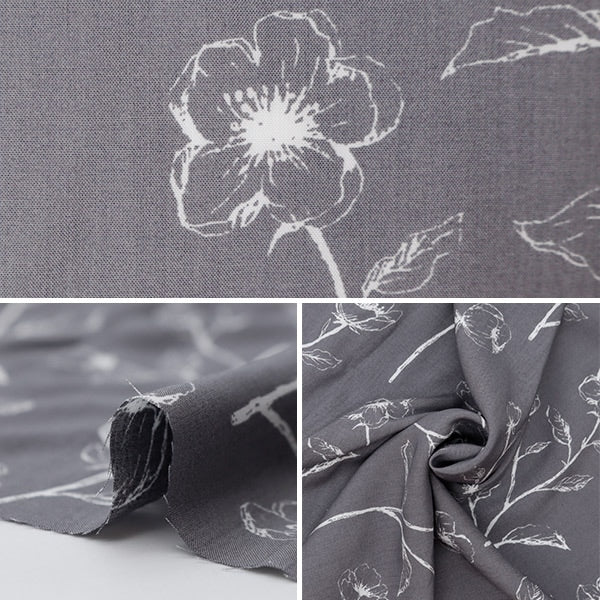 [化学繊維 再生繊維 人絹 ハンドメイド ソーイング 布 花柄 灰色]