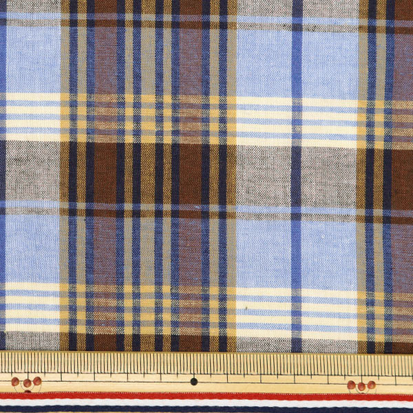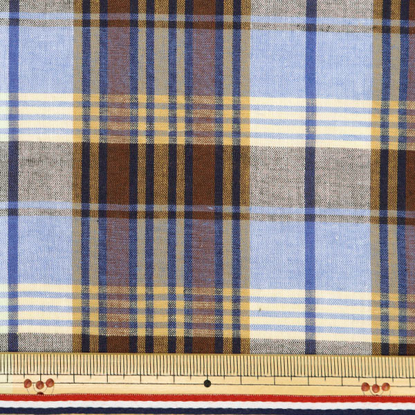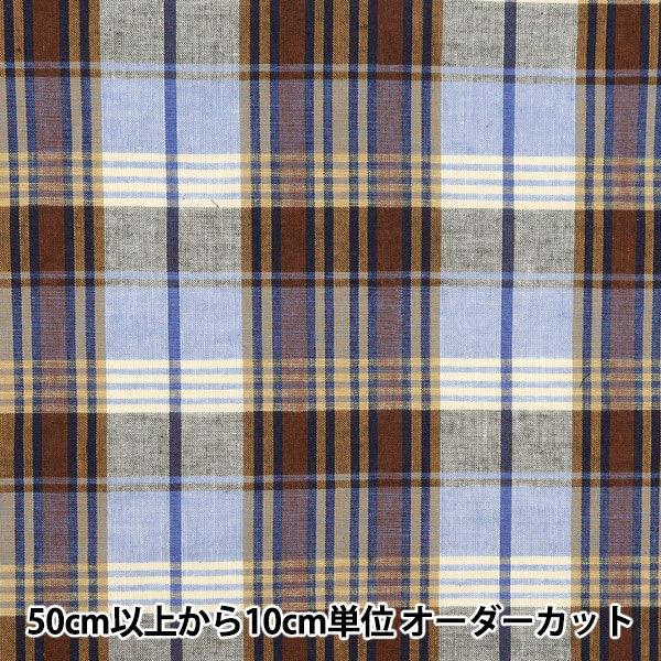 【数量5から】 生地 『マドラスチェック ブラウンサックス INM24-BLSAX』