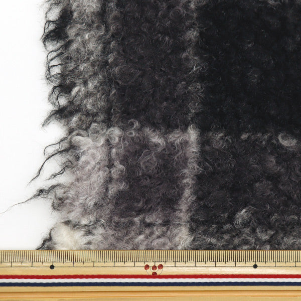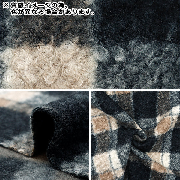 カーリーな毛足でふんわり柔らか、大き目なチェック柄の生地です。