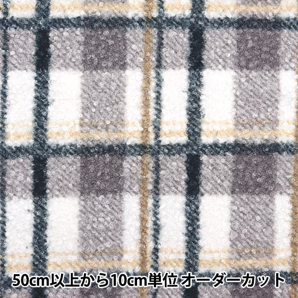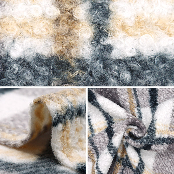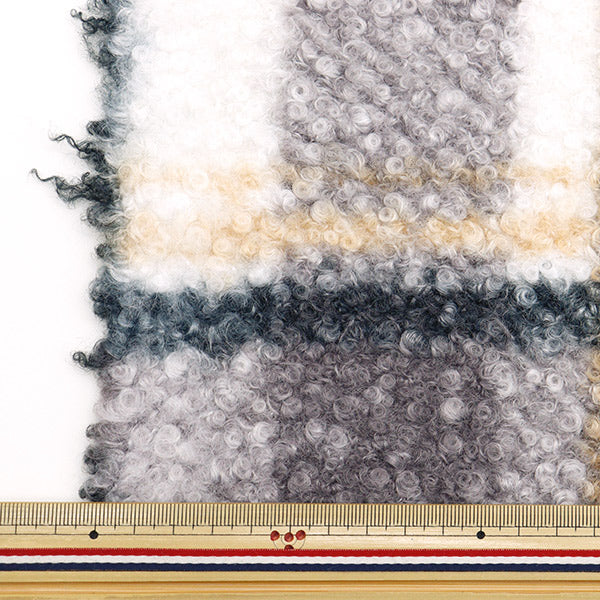 カーリーな毛足でふんわり柔らか、大き目なチェック柄の生地です。