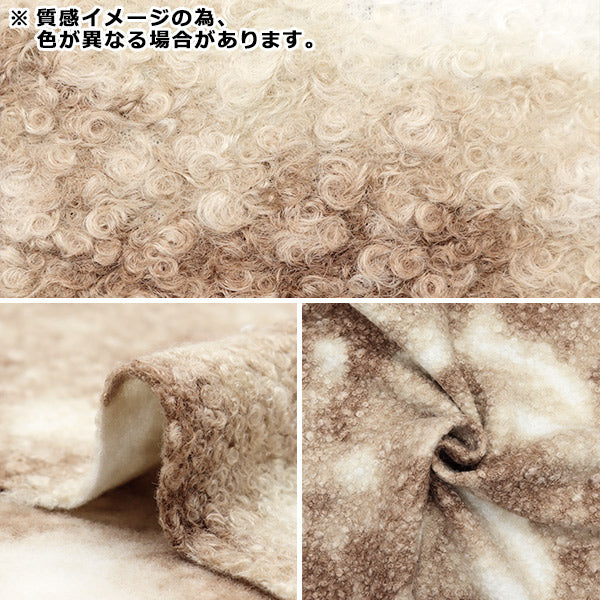 カーリーな毛足でふんわり柔らか、1トーンむら染め調プリントの生地です。