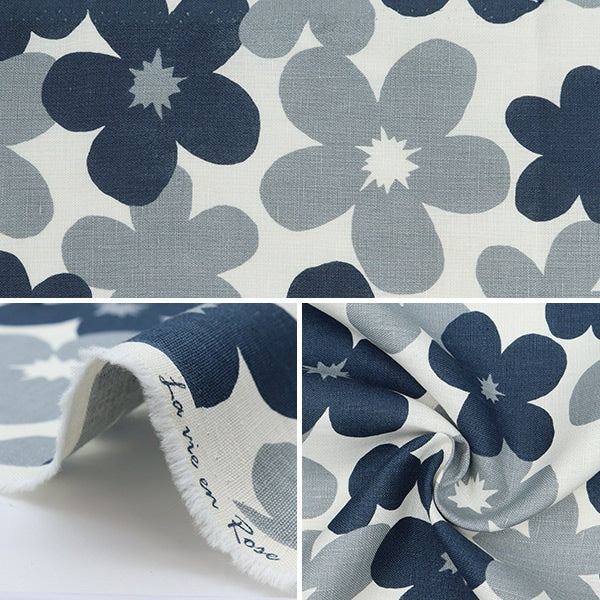 [布 手芸 裁縫 ソーイング ハンドメイド 花 フラワー 植物 リネン 青]