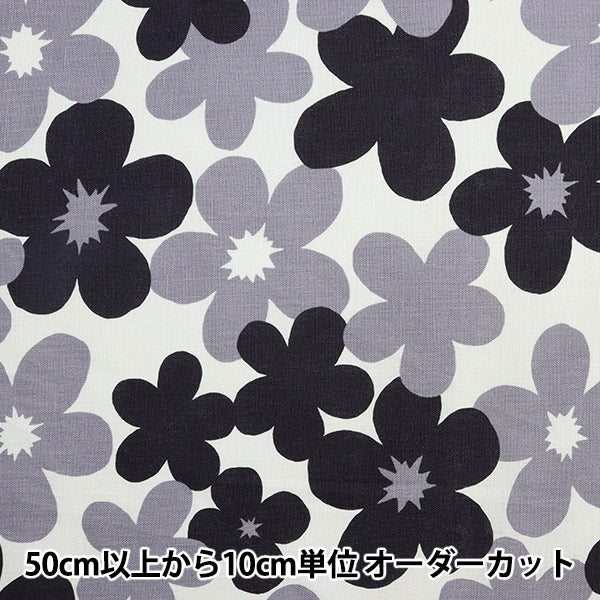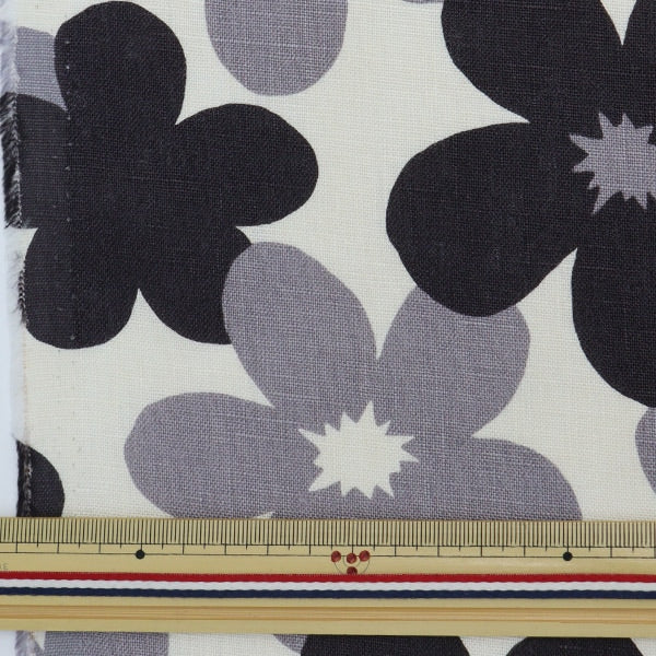 [布 手芸 裁縫 ソーイング ハンドメイド 花 フラワー 植物 リネン 灰色 ブラック]
