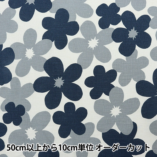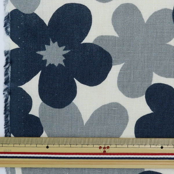 [布 手芸 裁縫 ソーイング ハンドメイド フラワー 花 植物 リネン 灰色 青 紺 ブルー ネイビー]