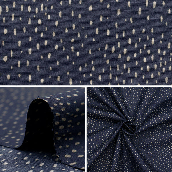 宇宙の輝く星屑のようにランダムに配置されたドットが広がる生地です。