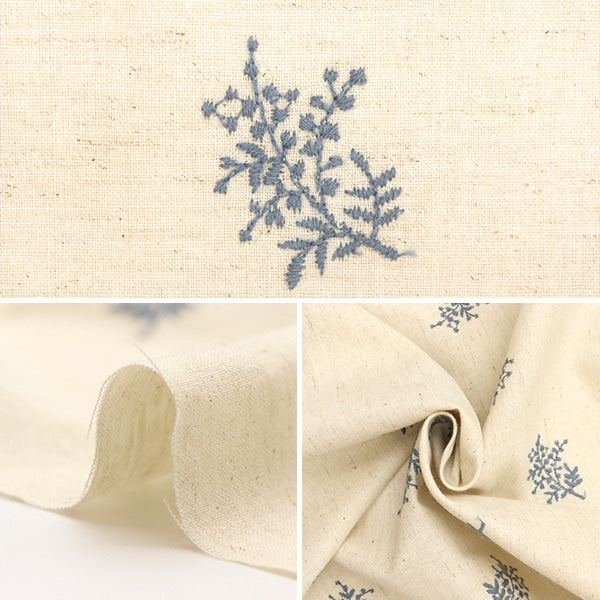 [刺繍 ししゅう キナリ きなり 生成 グレー 灰色 花柄 布 コットンリネン コットン リネン]