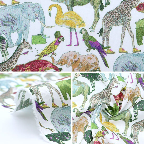 [布 Queue for the Zoo どうぶつ アニマル アニマル柄 ピンク グリーン 緑 ホワイト 白 イエロー 黄色 綿 コットン]