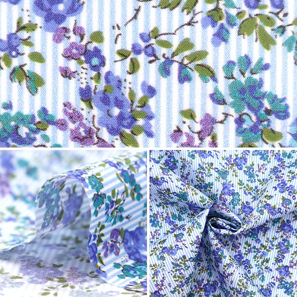 [布 LIBERTY リバティプリント Liberty Fabrics リバティファブリックス エターナル ETERNAL Garland Stripe ガーランド・ストライプ 青 ブルー]