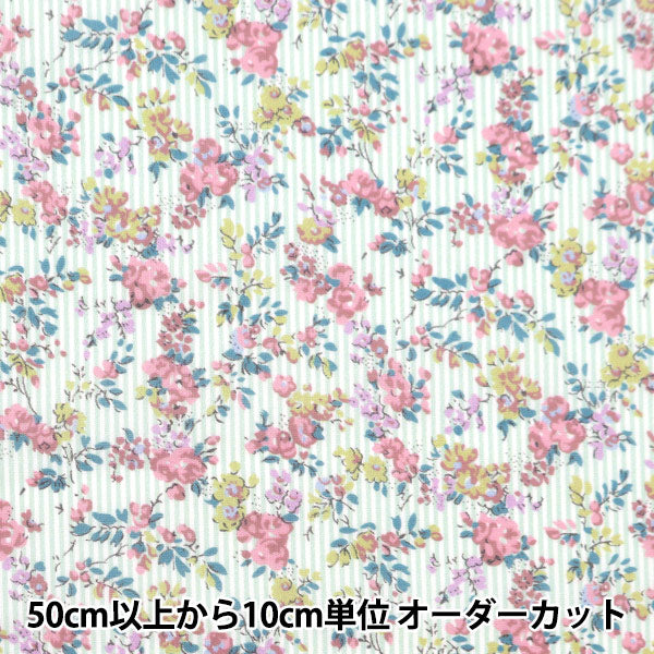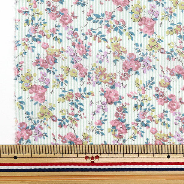 [布 LIBERTY リバティプリント Liberty Fabrics リバティファブリックス エターナル ETERNAL Garland Stripe ガーランド・ストライプ 薄ピンク ミント]