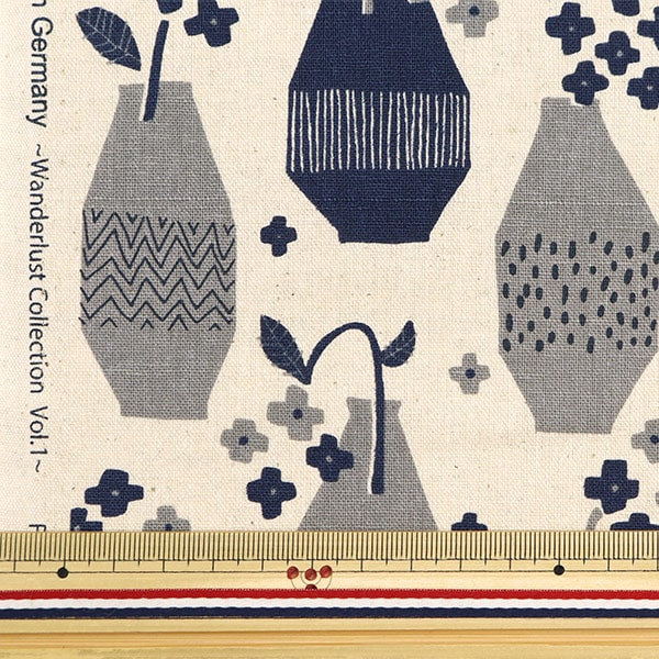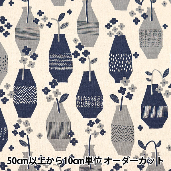 【数量5から】 生地 『綿麻キャンバス ゲミュートリッヒカイト 花瓶柄 ネイビー FF10456-E』