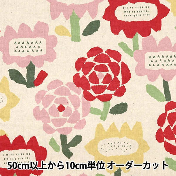 【数量5から】 生地 『綿麻キャンバス ゲミュートリッヒカイト 花柄 レッド FF10457-A』