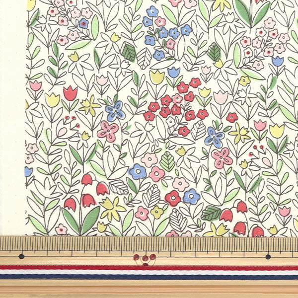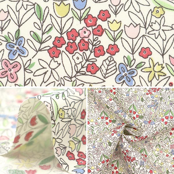 [布 コットン 布地 薄手生地 ソーイング ハンドメイド 花柄 チューリップ スズラン 赤色 あか 白色 しろ]