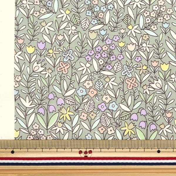 [布 コットン 布地 薄手生地 ソーイング ハンドメイド 花柄 チューリップ スズラン 灰色 はいいろ]