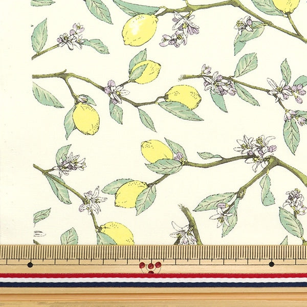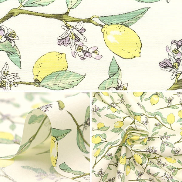 [布 コットン 布地 薄手生地 ソーイング ハンドメイド 檸檬 れもん 白色 しろ]
