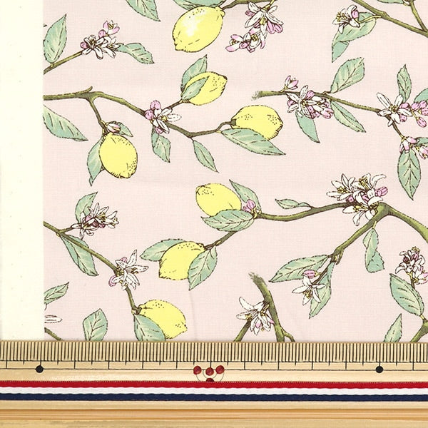 [布 コットン 布地 薄手生地 ソーイング ハンドメイド 檸檬 れもん 桃色 もも]