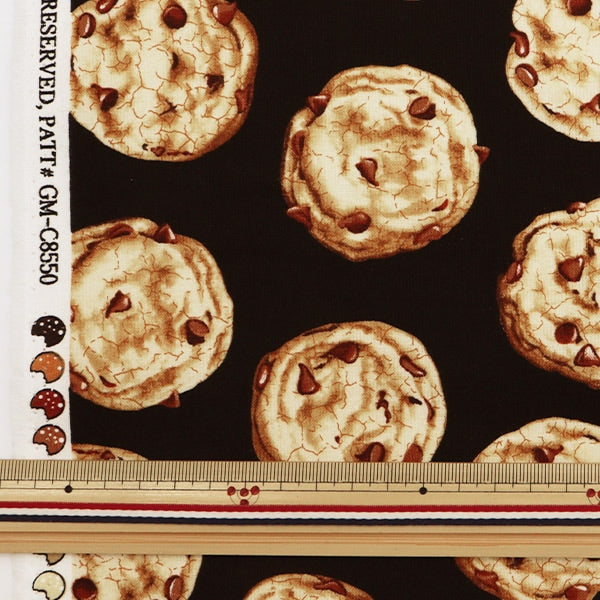 【数量5から】 生地 『インクジェットプリント クッキー C8550-BLACK』 USAコットン