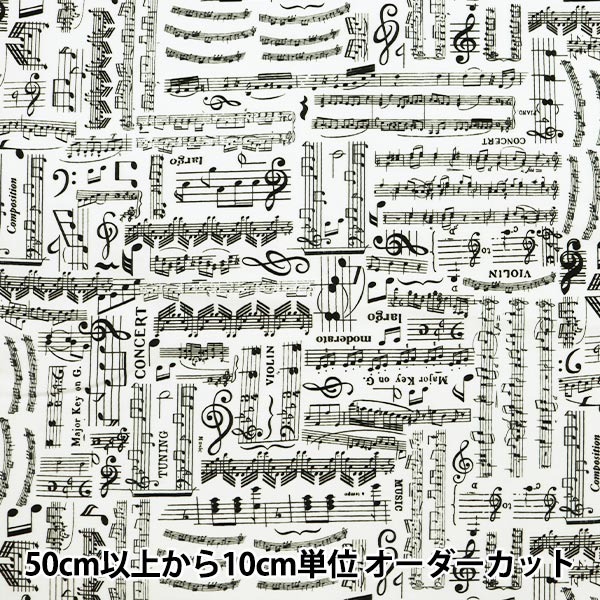[ホワイト 白 音符 輸入 布]