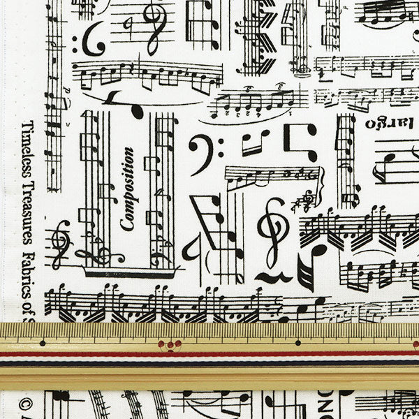 【数量5から】 生地 『インクジェットプリント 楽譜 C7584-WHITE』 USAコットン