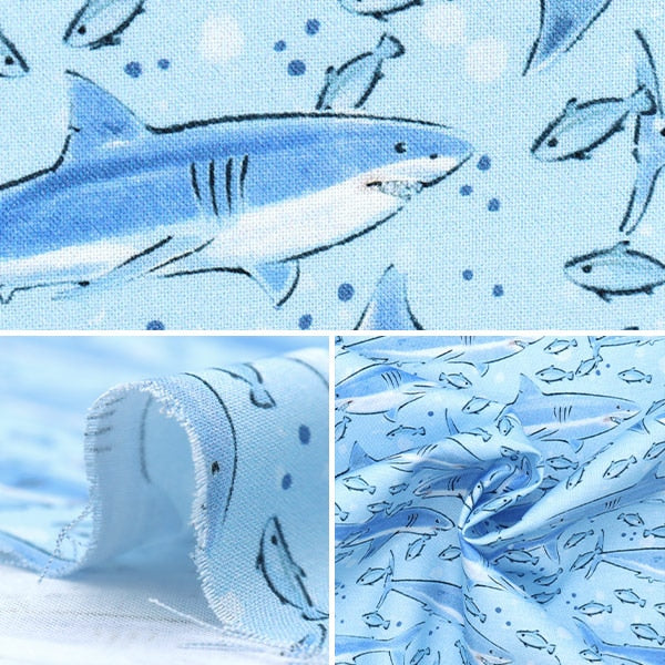 【数量5から】 生地 『USAコットン オーシャン・ブルー・シャークス ブルー THOMAS-CD1297』