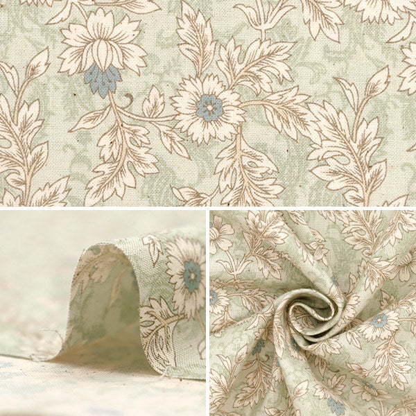 [布 スケア 花更紗 千花模様 ミルフルール 花柄 草花 フラワー 緑]