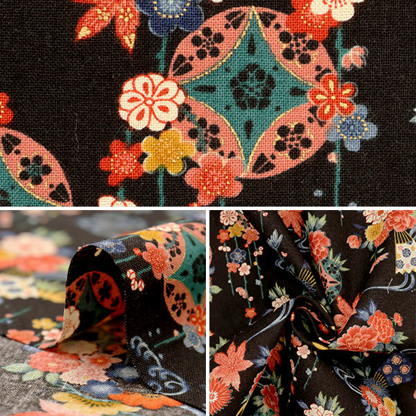 梅や紅葉、扇子などのカッコ良い和柄の生地です。
