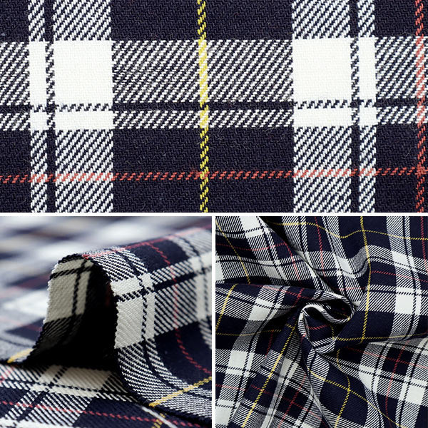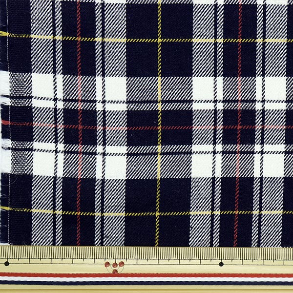 【数量5から】 生地『ベーシックチェック タータンチェック ホワイト×ネイビー YZW003』