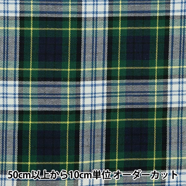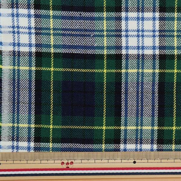 【数量5から】 生地『ベーシックチェック タータンチェック ホワイト×グリーン YZW006』