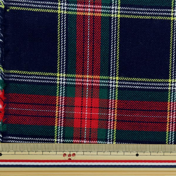 【数量5から】 生地『ベーシックチェック タータンチェック ネイビー×レッド YZW009』