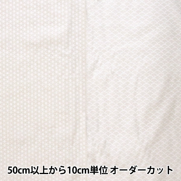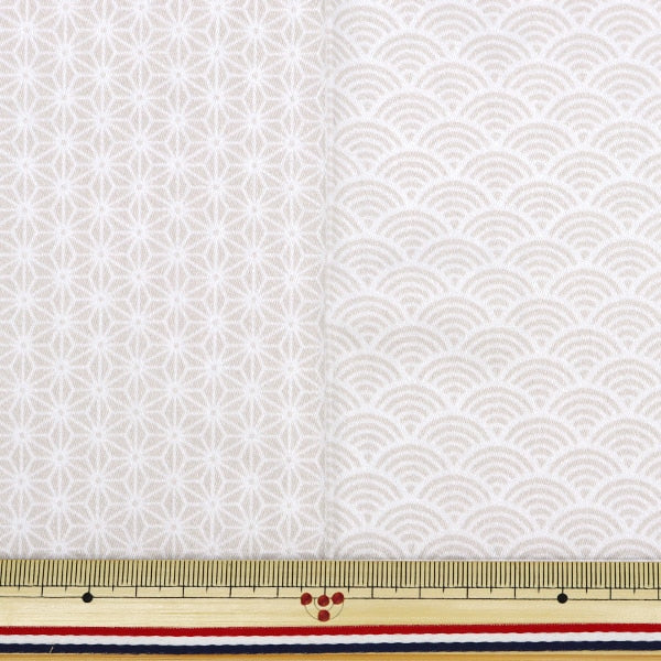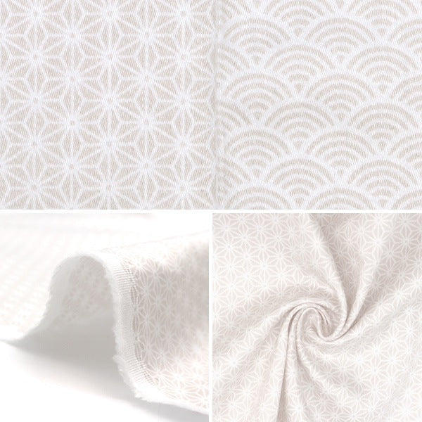 【数量5から】生地 『綿サテン にほんの模様 麻の葉 青海波 ベージュ ASA-SEI-A』