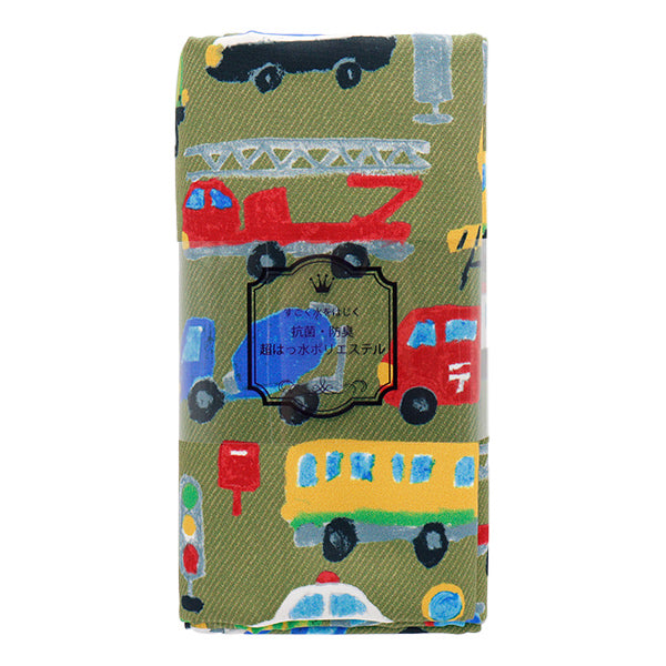 生地 『すごく水をはじく抗菌防臭超撥水ポリエステル カットクロス 約135cm×100cm クレヨン車 グリーン C-HP-SC-CR-GR』