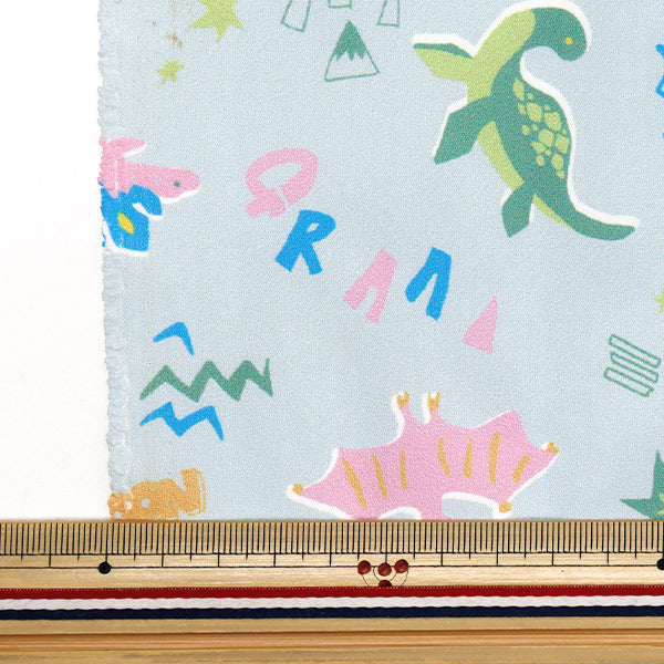 [はっ水加工 撥水加工 撥水生地 雨具 布 入園 入学 バッグ 袋物 ダイナソー 恐竜 青 水色]
