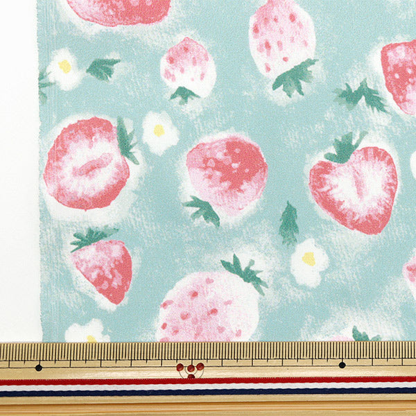 [はっ水加工 撥水加工 撥水生地 雨具 布 入園 入学 バッグ 袋物 苺 食べ物 果物 フルーツ 青 緑 水色]