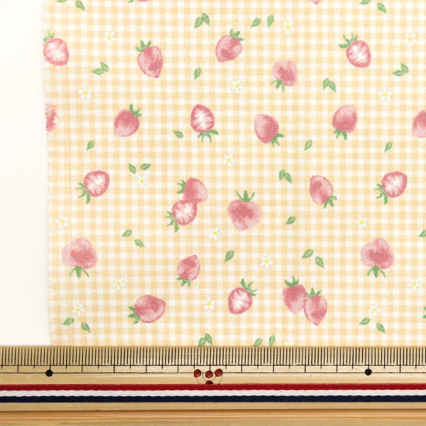 [はっ水加工 撥水加工 撥水生地 雨具 布 入園 入学 バッグ 袋物 苺 いちご 食べ物 果物 フルーツ 格子 黄色]