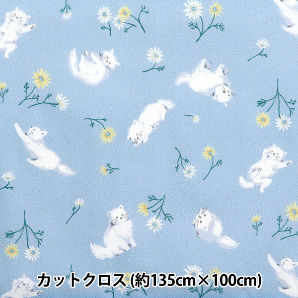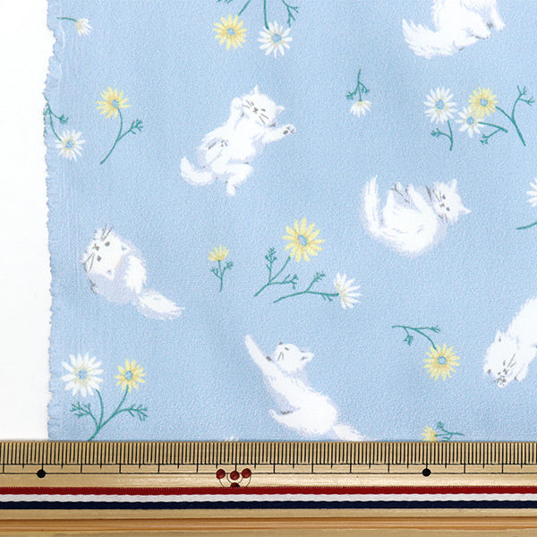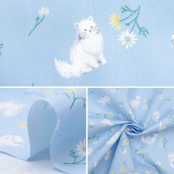 [はっ水加工 撥水加工 撥水生地 雨具 布 入園 入学 バッグ 袋物 猫 ねこ ネコ 動物 アニマル お花 フラワー 水色]